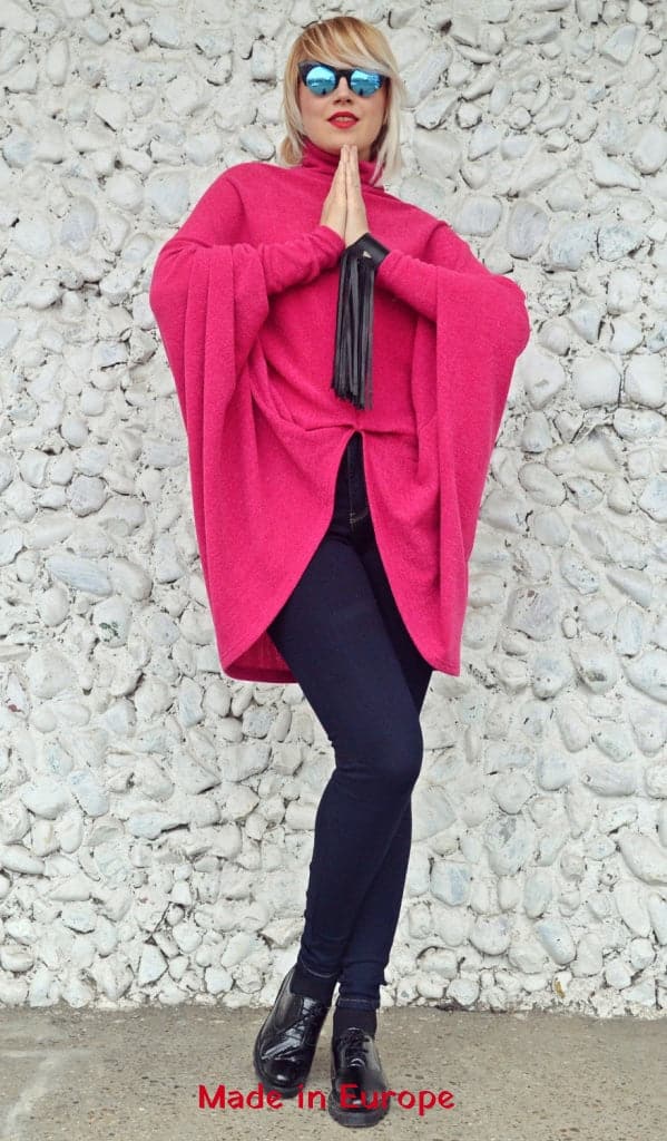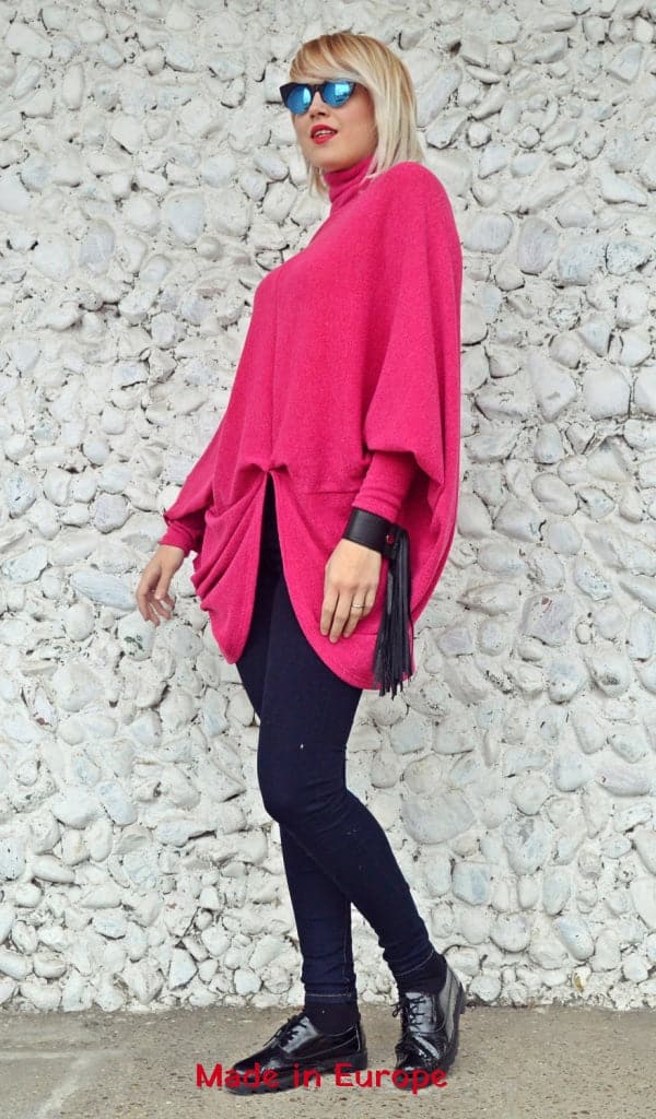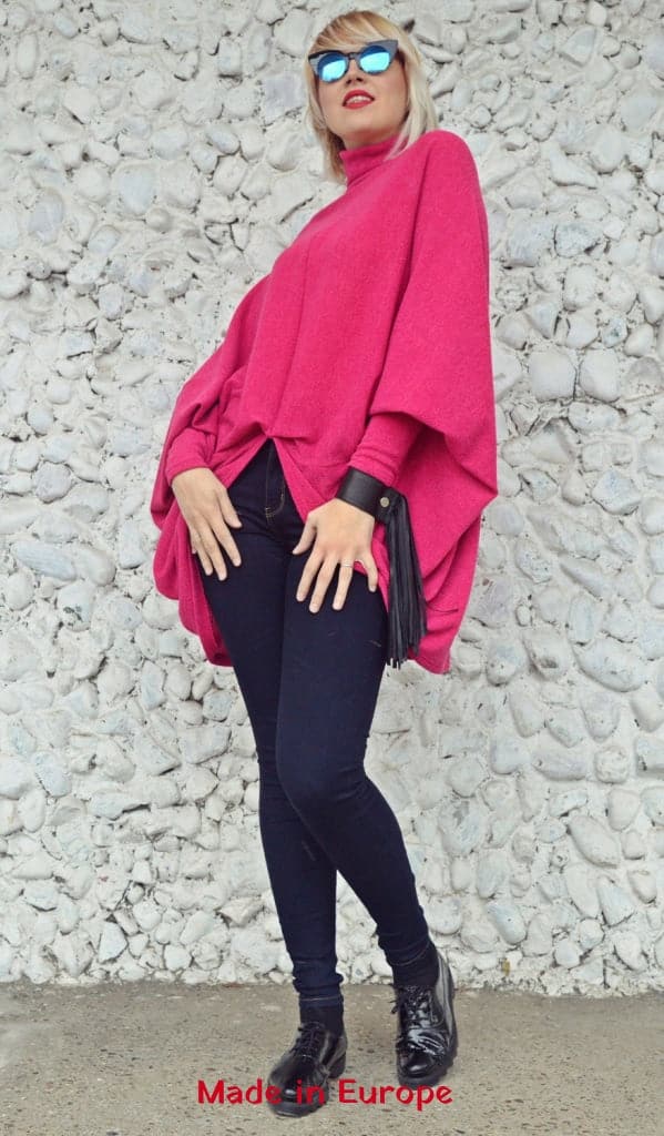 Fuchsia extravagant top made of acrylic, being soft and comfortable, easy to wear and a versatile piece that will brighten up your outfits! Extravagant and fun to wear, this new sweater will keep you warm while jazzing up the city!
