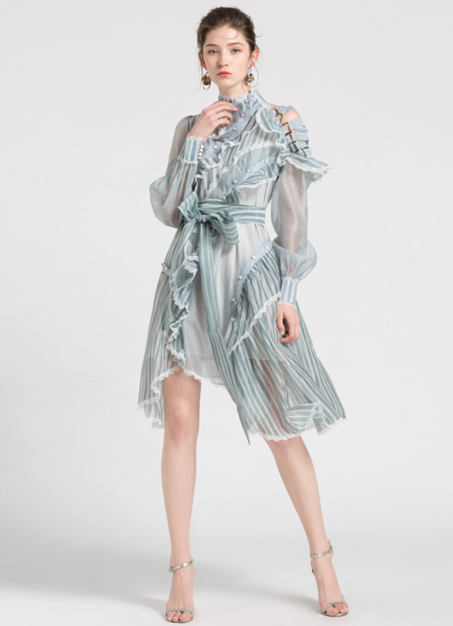 S;Bust 94 Length 112 Waist 70-76 Sleeve 66