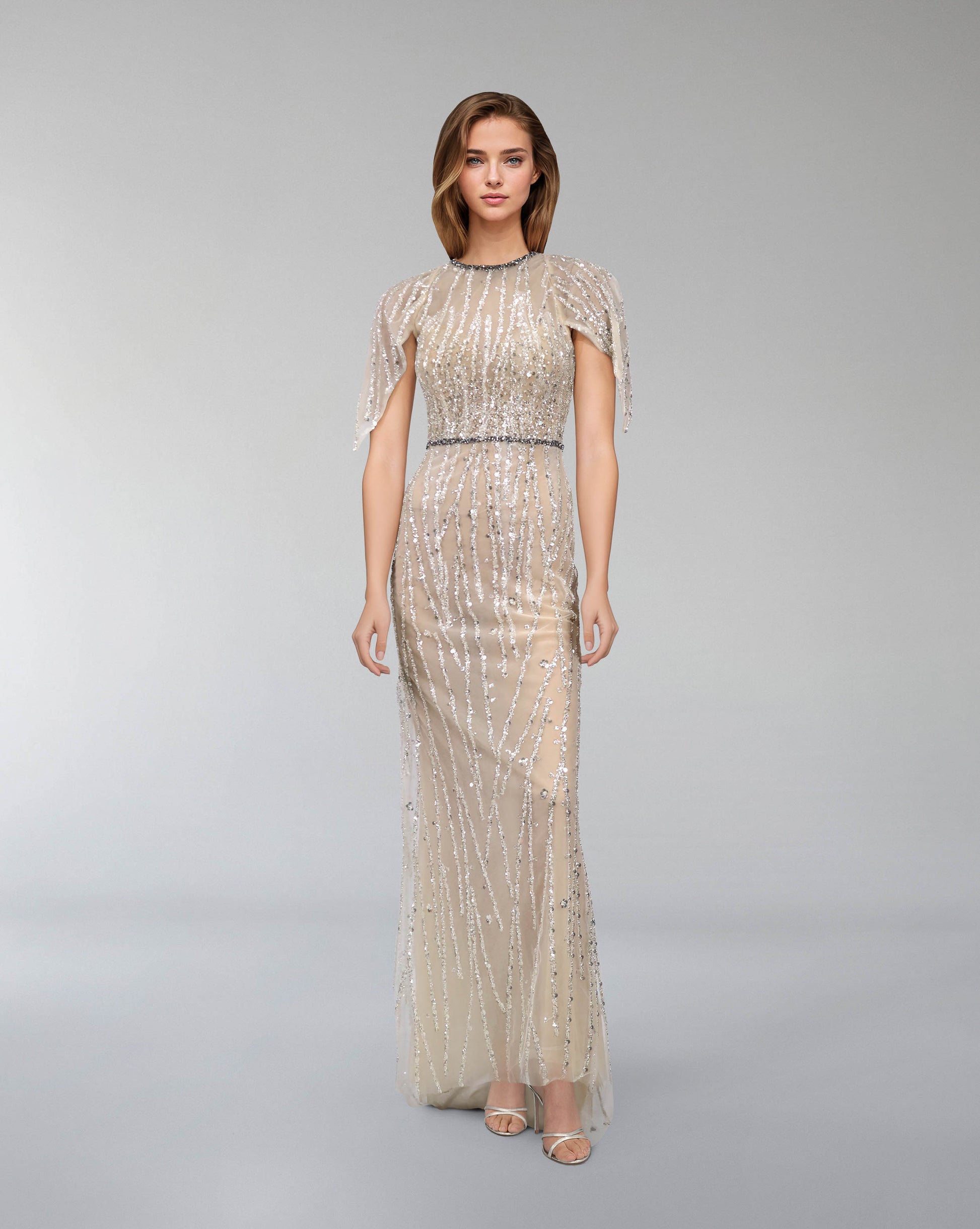 Sequined column dress with ruffled sleeves -ODD-ARIA